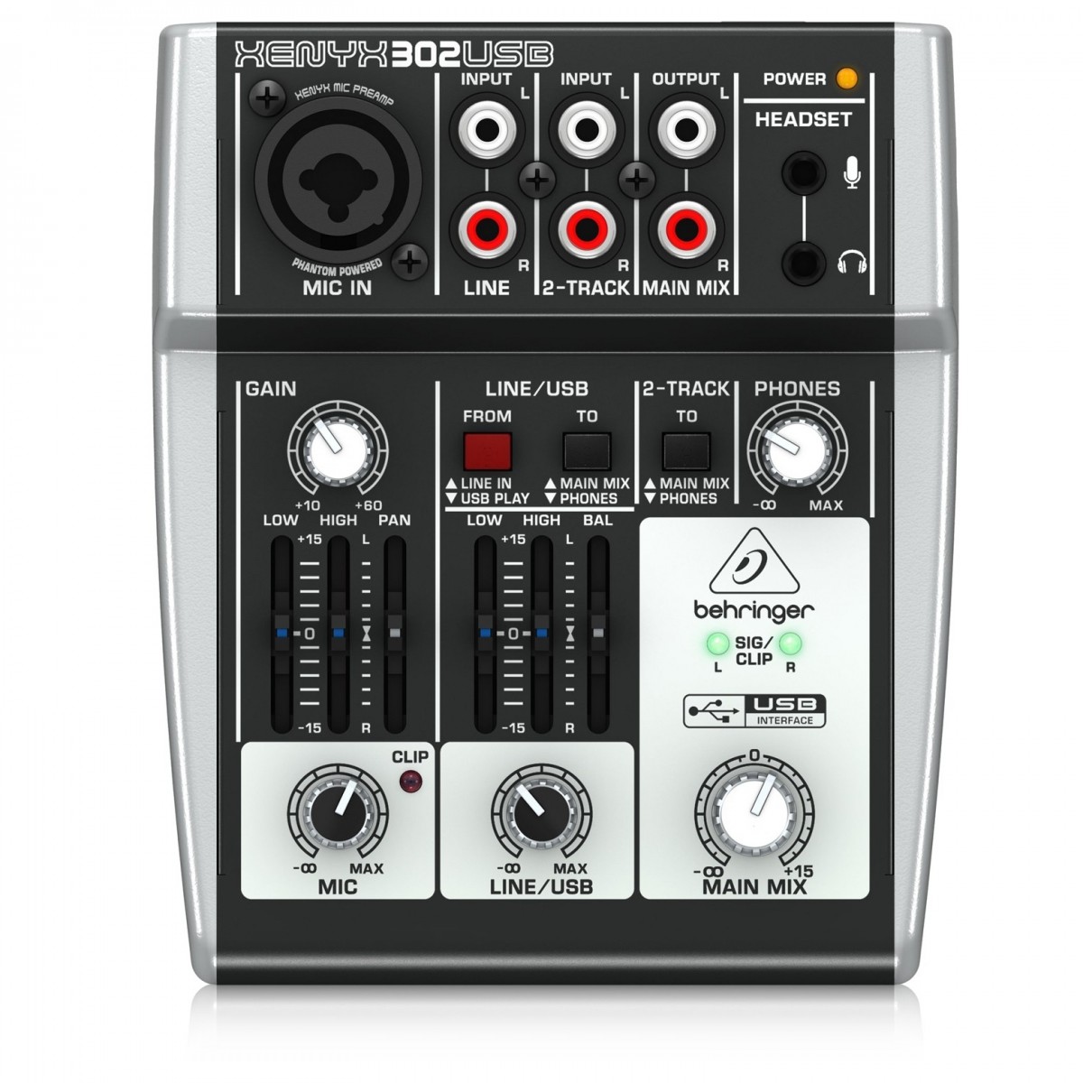 The Behringer XENYX 302USB USB Analog Mixer features state-of-the-art XENYX microphone preamps, combo input jacks and a stereo USB/line channel which makes the 302USB mixer perfect for both small home studios and on-the-go recording.
